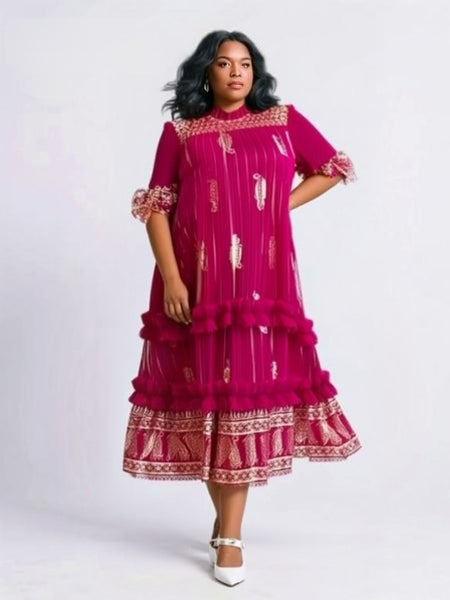 Fuchsia Gold Ruffle Dress